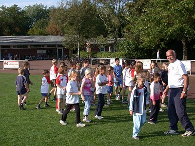 Wichtigstes Ziel des Trainerteams: Leichtathletik soll Spaß machen! Wer lustlos oder gezwungenermaßen zu einer Übungsstunde erscheint, kann weder Erfolg haben noch für ein gutes Klima in der Gesamtgruppe sorgen. Beides ist sehr wichtig, damit man nicht nur Gelegenheitssportler heran-zieht, sondern stabile Gruppen aufbaut. Mit Erfolg ist hier übrigens nicht die Urkunde mit guter Platzierung am Ende eines Wettkampfjahres gemeint! (Sicher, über die freuen sich die Sportler und das Trainerteam, das so erlebt, dass es nicht alles falsch macht, sehr. Auf einen Kreismeistertitel sind wir alle gemeinsam stolz!)