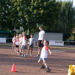 Vor allem donnerstags zwischen 18.30 und 20.00 Uhr in der Gruppe der jugendlichen Leichtathleten, die oft schon viele Jahre beim FTV trainieren, kennt man einander und schätzt das wöchentliche Treffen nicht nur, um sich fit zu halten. In der mit über 30 Kindern sehr großen Gruppe, die donnerstags ab 17.00 Uhr trainiert, sind bereits einige erfahrene Wettkämpfer dabei sowie eine Menge Kinder, die einfach Bewegungserfahrung sammeln wollen bzw. herauszufinden versuchen, wo ihre sportlichen Begabungen liegen. Hier wird im Trainingsprogramm besonders darauf geachtet, dass der „Spaßfaktor“ stimmt!Abwechslung ist natürlich ebenfalls eine Voraussetzung für die gute Stimmung beim Training. Und für Abwechslung ist von Natur aus gesorgt: Ab Ostern wird bei trockenem Wetter auf der Fischelner Bezirkssportanlage trainiert; ab den Herbstferien bei jedem Wetter in der Halle des MSM-Gymnasiums, die auch bei Regenwetter für den Rest des Jahres zur Verfügung steht. Die drei Grunddisziplinen der Leichtathletik haben sich seit den alten Griechen nicht verändert: Laufen, Springen, Werfen – das ist es, worum es mit dem Anspruch „höher, schneller, weiter“ immer noch geht. Die Technik hat sich natürlich fortentwickelt, es gibt also immer noch Neues zu unterrichten – und zu lernen. In der Freiluftsaison stehen die drei Grundthemen der Leichtathletik auf dem Übungsplan im Vordergrund, in der Hallensaison beschäftigt man sich mehr mit dem Ausfeilen der Techniken, Krafttraining (kann auch Spaß machen!) und Sportspielen, damit es nicht langweilig wird. Und eigentlich kann es gar nicht langweilig werden, so lange man die eigenen Grenzen noch nicht erreicht hat!